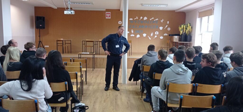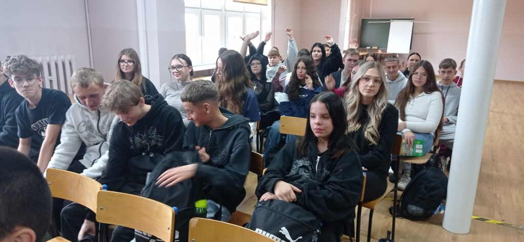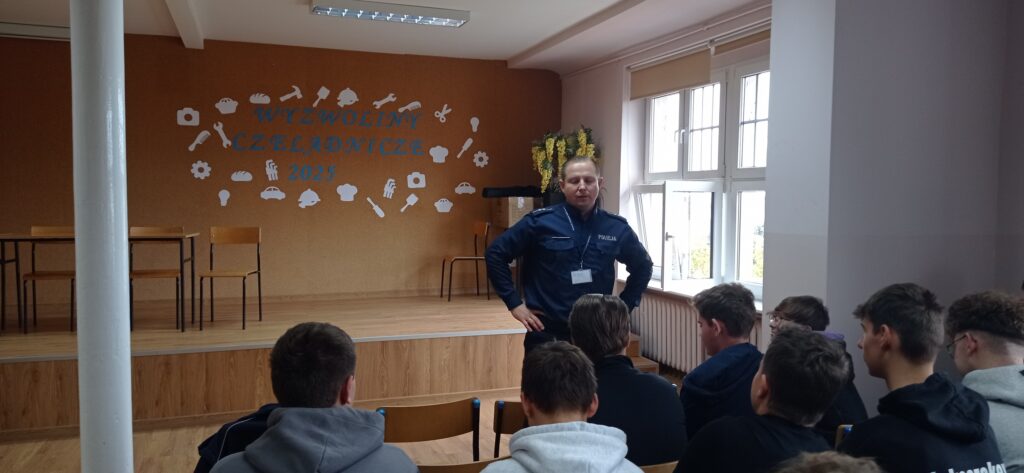 W czwartek 16.10.2025r. w naszej szkole odbyło się spotkanie z funkcjonariuszem Policji panem asp. Adamem Wojcińskim w ramach programu „Dzieciństwo bez przemocy – ewaluacja”. Szeroko zostały przedstawione zagadnienia dotyczące form cyberprzestępczości oraz innych aspektach przemocy między rówieśniczej.