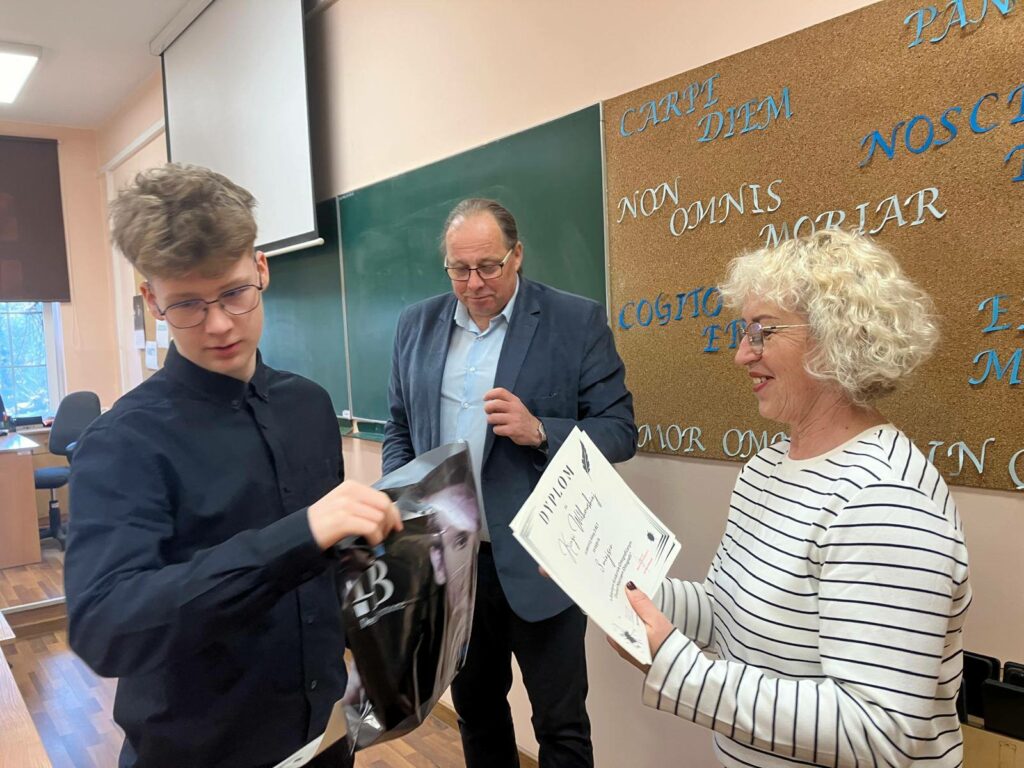 Pierwsze miejsce zajęła zwyciężczyni ubiegłorocznej edycji konkursu szkolnego i powiatowego Katarzyna Kempińska z klasy III ALT. Na podium znalazły się także Nikola Czyżewska ( III ALT) i Kinga Witkowska ( III ALT). Wyróżnienia otrzymali Mateusz Walkowiak