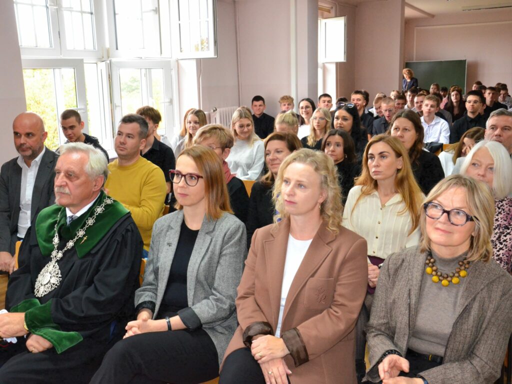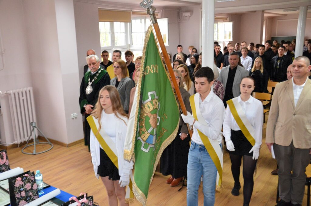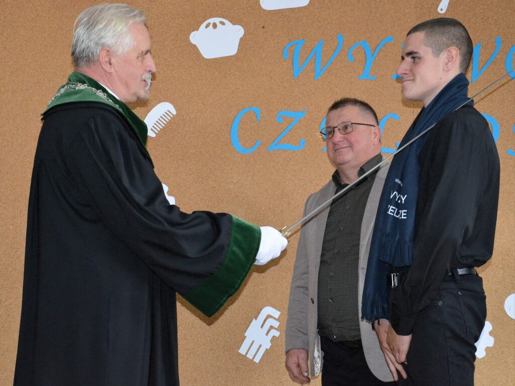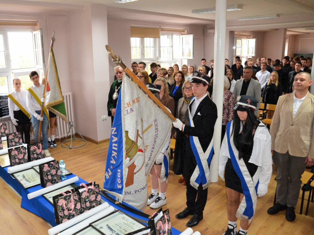 W piątek 17.10.2025 odbyły się w naszej szkole „Wyzwoliny czeladnicze”. Wydarzenie ważne dla tegorocznych absolwentów Branżowej Szkoły I Stopnia, którzy egzaminy czeladnicze w swoich zawodach zdawali przez Izbę Rzemieślniczą. W trakcie uroczystości każdy absolwent odbierając świadectwo został włączony w grono czeladników. Pasowania, poprzez położenie na ramieniu absolwenta szabli Jana Kilińskiego, dokonywał prezes Wielkopolskiej Izby Rzemieślniczej Marek Skoraszewski. Wcześniej o dokonanie ceremonii pasowania do prezesa Izby zwróciła się Alicja Kmieć, która uzyskała najwyższą ocenę z egzaminu czeladniczego. Poniżej zapraszamy na fotorelację z tego wydarzenia.